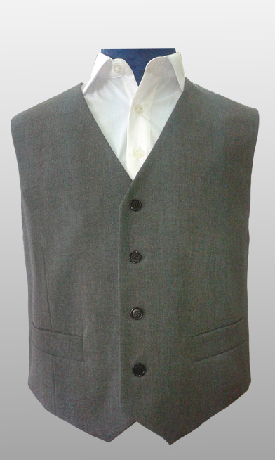 Жилет для мальчика с центральной застёжкой на пуговицы, карманами с листочками и хлястиком с пуговицей на спинке.