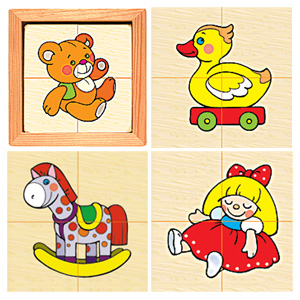 Игра представляет собой 4 картинки, разрезанных каждая на 4 равных части по прямой