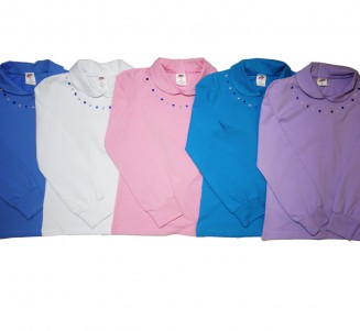 Блузка для девочки. Декорирована металлизированными разноцветными стразами в виде ожерелья. Очень элегантно смотрится под юбку.