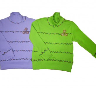 Джемпер детский для девочки. Воротник стоечка. Декорирован апликацией в виде цветка.