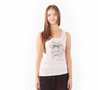 Майка-борцовка на подростка-девочку. Выполнена в 2х цветах: нежно-розовый и молочный. Материал (вискоза) очень приятный телу, мягкий и нежный. Украшена принтом.