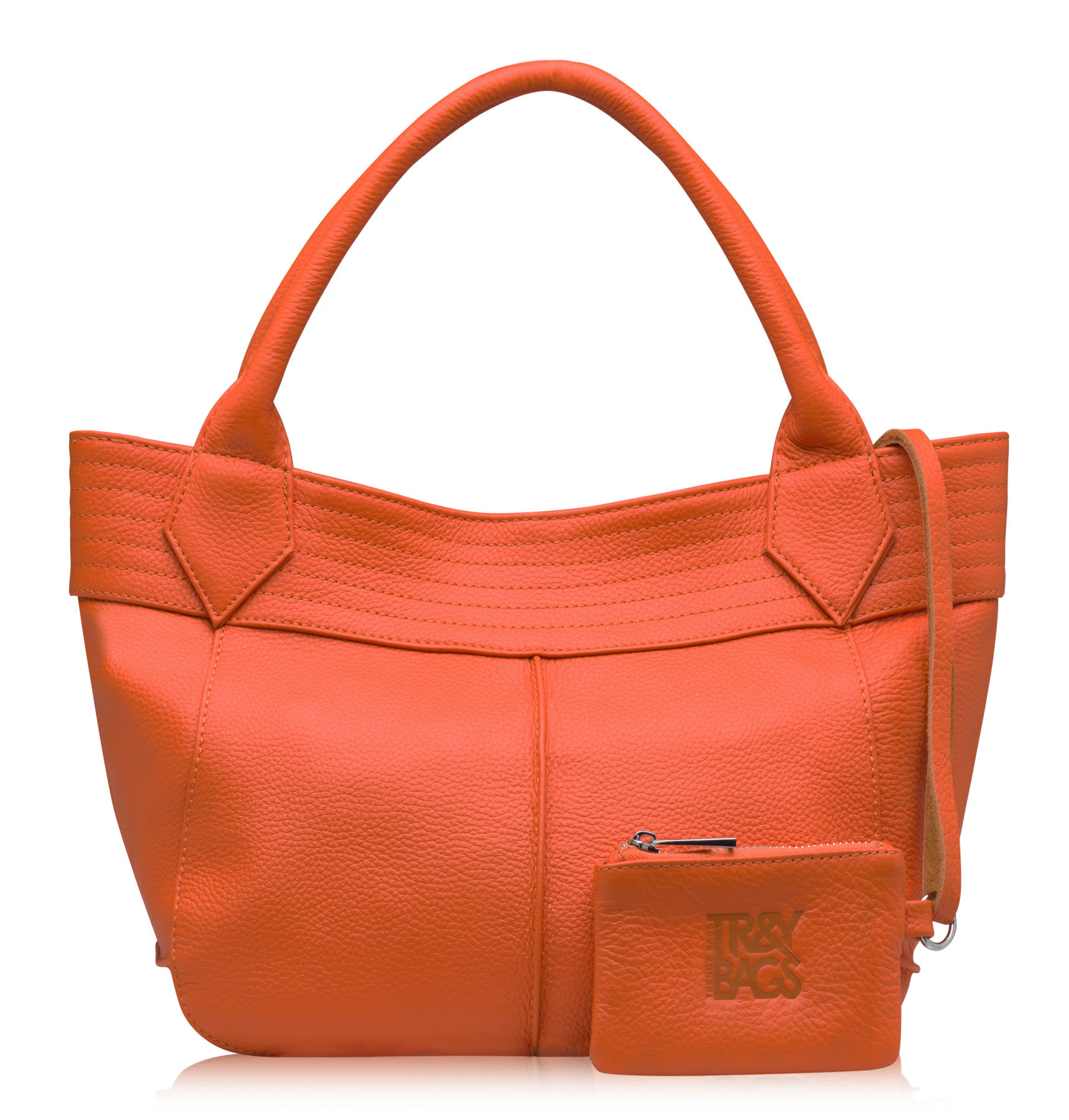 Абсолютно универсальная сумка из качественной натуральной кожи. Средний размер и стильная форма делает эту сумку подходящей и к деловому костюму и к нарядному платью. Такие милые детали, как маленькая косметичка на ремешке и диск на кожаном ремешке придают этому аксессуару неповторимый шарм. Разъема ручек достаточно, чтобы носить сумку на плече. Цвет оранжевый.