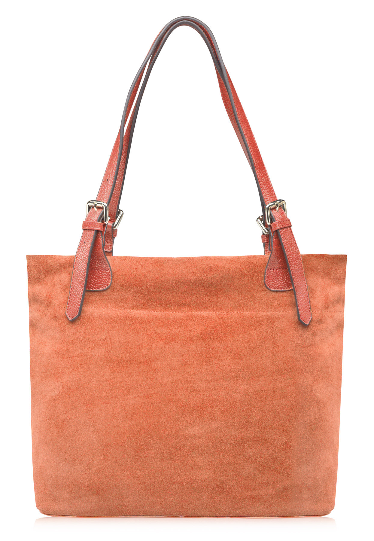 Лаконичная и женственная сумка из натуральной замши и кожи. Разъема ручек достаточно, чтобы носить сумку на плече. Сумка вмещает формат А4.
