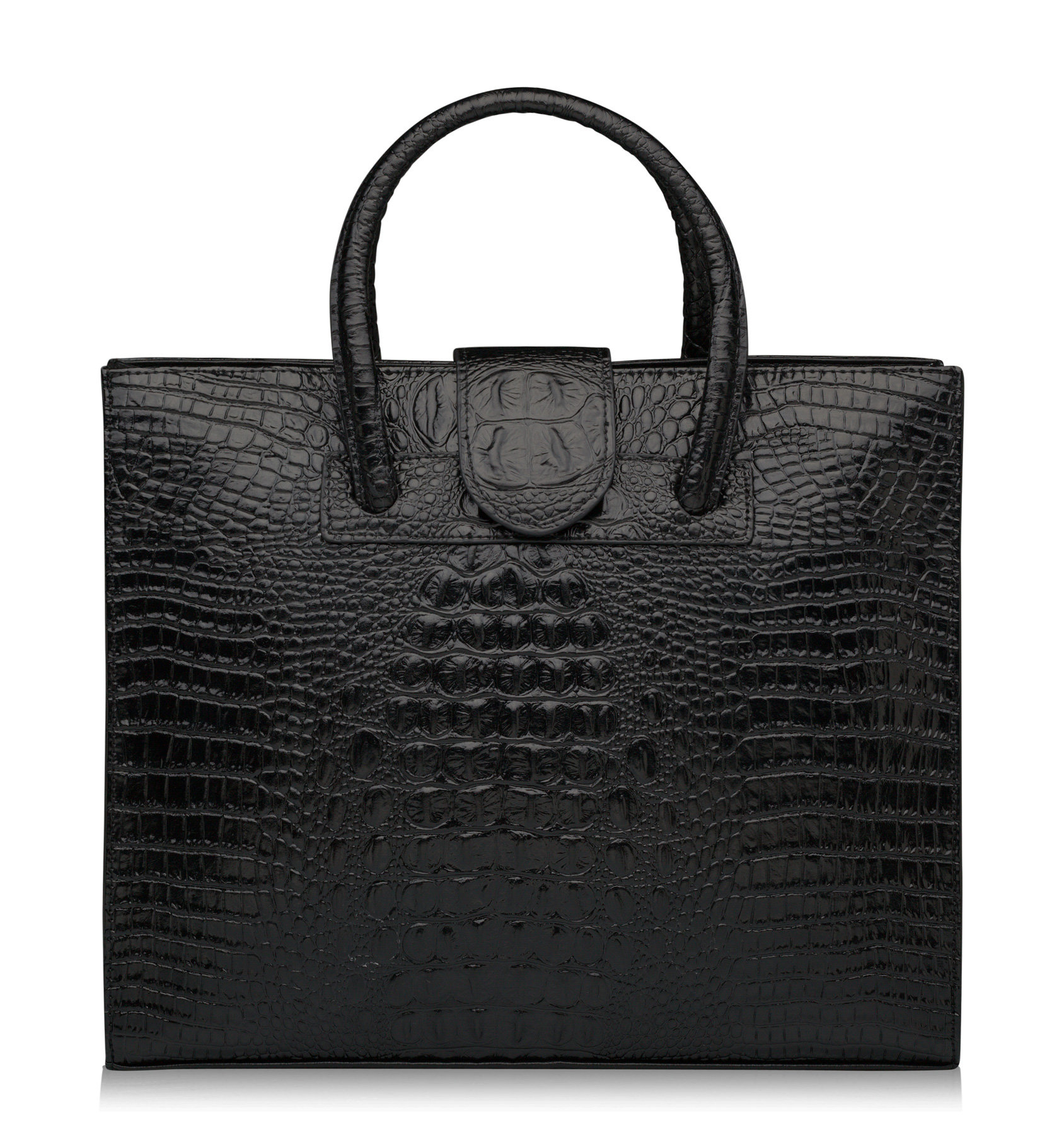 Изысканная сумка для бизнес леди из натуральной кожи. Идеальна для документов, а также подходит для небольшого ноутбука. Даже деловой портфель может быть женственным и стильным. Лаконичная классическая форма сочетается с актуальным тиснением под крокодила. Подклад полностью коричневый.