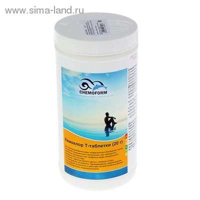 Хлорные таблетки с использованием трихлоризоциануровой кислоты, более 90% активного хлора для длительной дезинфекции воды в бассейне объёмом более 20 м3.