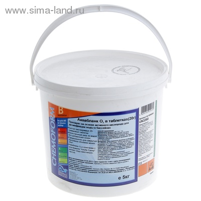 Активный кислород в таблетках для дезинфекции воды в бассейнах объёмом менее 20 м3. Изготовлен на основе пероксомоносульфата калия. Представляет собой таблетки весом 20 граммов.