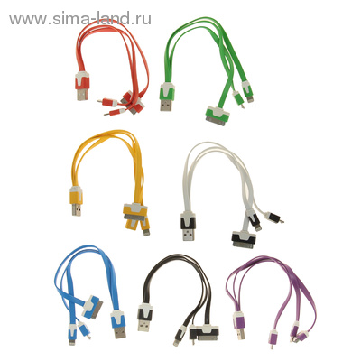 Шнур USB - 3 в 1, для i4/i5/microUSB, плоский, МИКС