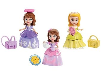 Игровой набор с персонажем мультфильма "София Прекрасная: История принцессы". Каждая игрушка оснащена особым механизмом, если покатить куклу вперед, то она совершит какое-нибудь действие. Например, кукла София с чайным сервизом будет "наливать чай" и подносить чашку к лицу.
