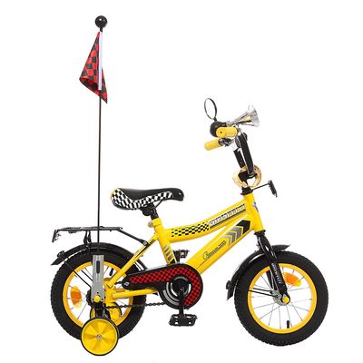 Невероятный драйв и умопомрачительный досуг ждут вашего ребёнка с двухколёсным велосипедом велосипед двухколесный 12" GRAFFITI Premium Racer, цвет: желтый. Он станет любимой игрушкой в его арсенале, поможет сформировать правильную осанку, укрепить сердечно-сосудистую систему и развить выносливость. Надёжная конструкция изготовлена из прочной стали, а значит, велосипед не один год будет радовать кроху. Невозможно не обратить внимание на дизайн: яркие цвета, флажок, зеркало, клаксон и багажник. Всё это, безусловно, оценит юный гонщик. Дополнительные колёсики по бокам придадут уверенность и помогут в обучении. Дарите отличное настроение с товарами от Сима-ленд!