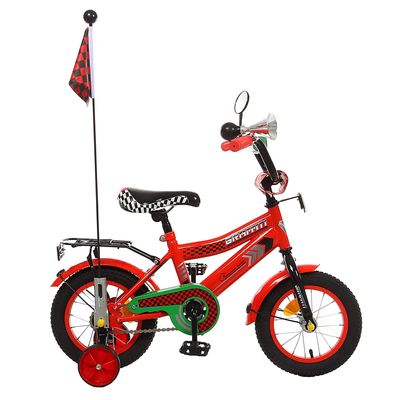 Невероятный драйв и умопомрачительный досуг ждут вашего ребёнка с двухколёсным велосипедом велосипед двухколесный 12" GRAFFITI Premium Racer, цвет: красный. Он станет любимой игрушкой в его арсенале, поможет сформировать правильную осанку, укрепить сердечно-сосудистую систему и развить выносливость. Надёжная конструкция изготовлена из прочной стали, а значит, велосипед не один год будет радовать кроху. Невозможно не обратить внимание на дизайн: яркие цвета, флажок, зеркало, клаксон и багажник. Всё это, безусловно, оценит юный гонщик. Дополнительные колёсики по бокам придадут уверенность и помогут в обучении. Дарите отличное настроение с товарами от Сима-ленд!