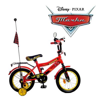 Невероятный драйв и умопомрачительный досуг ждут вашего ребёнка с двухколёсным велосипедом велосипед двухколесный 14" GRAFFITI "ТАЧКИ", цвет: красный. Он станет любимой игрушкой в его арсенале, поможет сформировать правильную осанку, укрепить сердечно-сосудистую систему и развить выносливость. Надёжная конструкция изготовлена из прочной стали, а значит, велосипед не один год будет радовать кроху. Невозможно не обратить внимание на дизайн, ведь он разработан по мотивам мультфильма <<Тачки>>: яркий красный цвет, флажок, зеркало, клаксон и багажник -- всё это, безусловно, оценит юный гонщик. Дополнительные колёсики по бокам придадут уверенность и помогут в обучении. Дарите отличное настроение с товарами от Сима-ленд!