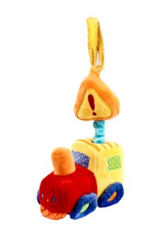 Игрушку можно подвесить к бортику детской кроватки. Если потянуть машинку вниз, заиграет приятная мелодия. Играя, малютка развивает мелкую моторику рук, слух и тактильные ощущения.