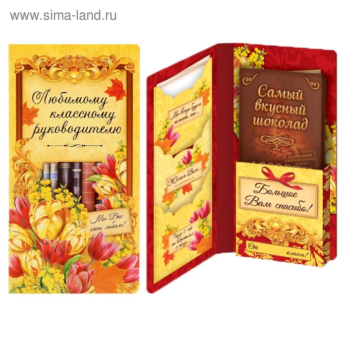 Учителя не жалеют сил, чтобы донести знания до молодых умов. Для многих своих учеников они становятся практически вторыми родителями. Их доброта и терпение помогают детям вырасти не только образованными, но и порядочными людьми. Как выразить благодарность за все их усилия? На помощь приходит подарочный конверт с местом под шоколадку <<Любимому классному руководителю>>! Для преподавателя это не только открытка, но и дорогие сердцу воспоминания.