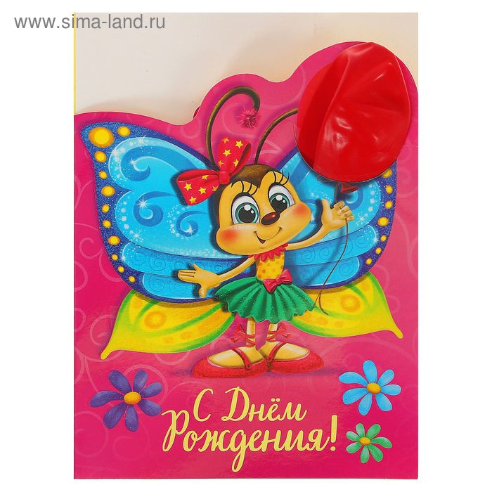 Открытка+Шарик "С ДР" Бабочка