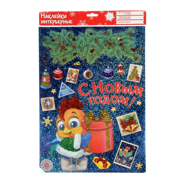Наклейки декоративные голография "Новогодние марки", 29,7 x42 см