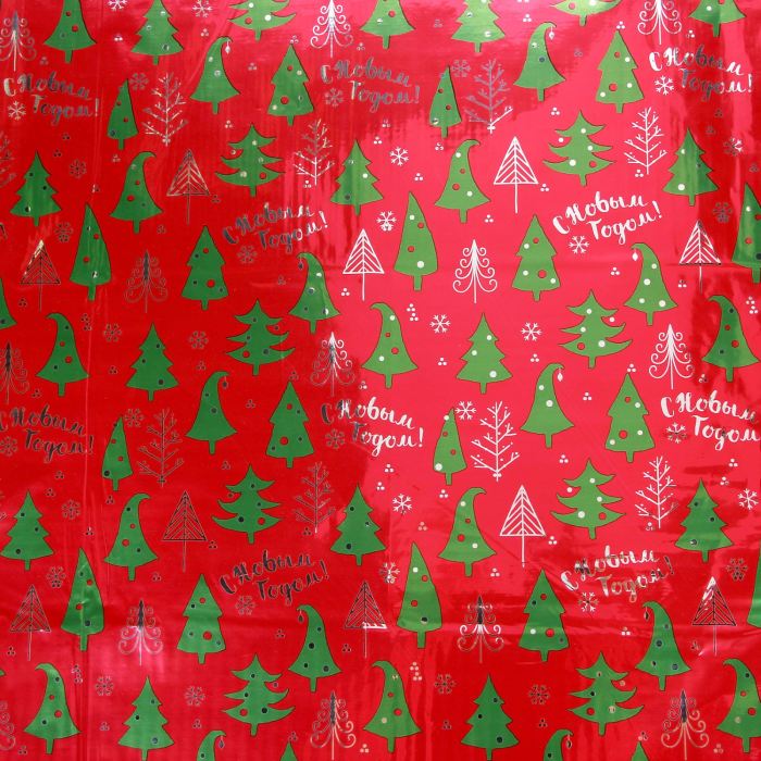Бумага упаковочная голография "Новогодние ёлочки",70 х100 см