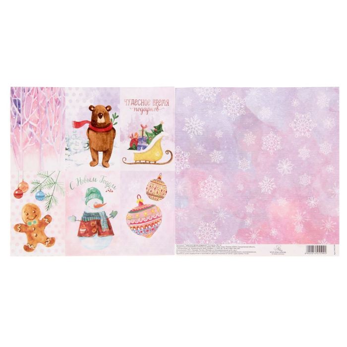 Бумага для скрапбукинга"Чудесное время подарков"15.5 х 15.5 см 180 г/м