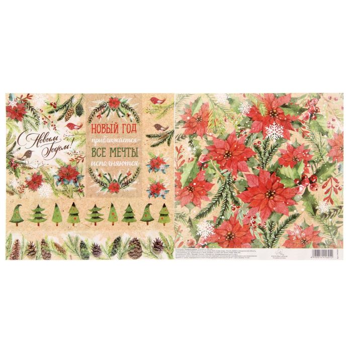 Бумага для скрапбукинга"Еловые шишки"15.5 х 15.5 см 180 г/м