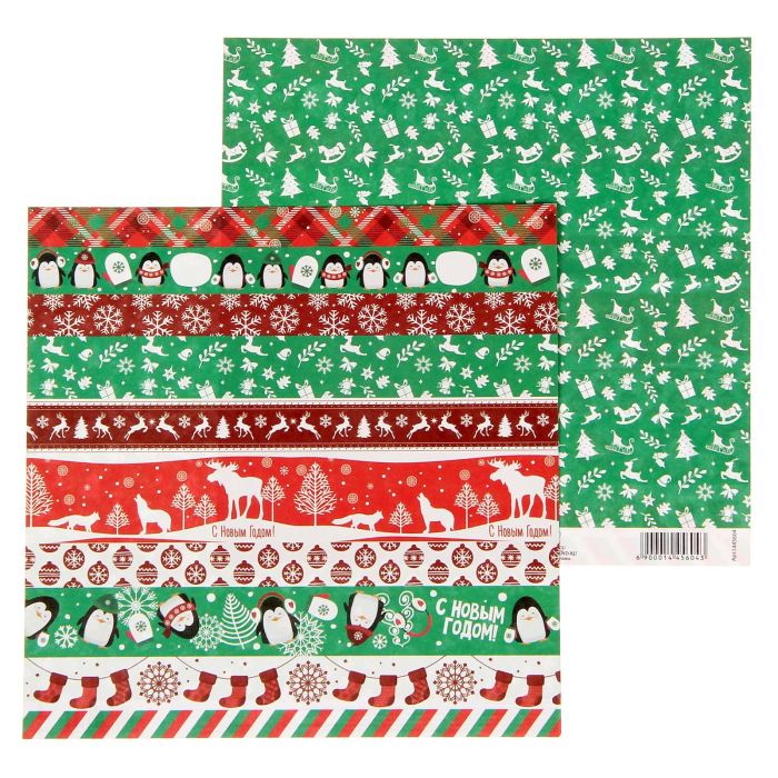 Бумага для скрапбукинга"Новогодняя тесьма"15.5 х 15.5 см 180 г/м
