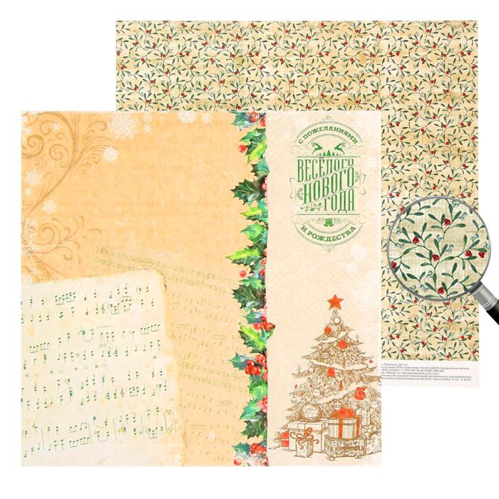 Бумага для скрапбукинга Рождественское ретро "Снежные новости"30.5 x 30.5 см, 180 г/м