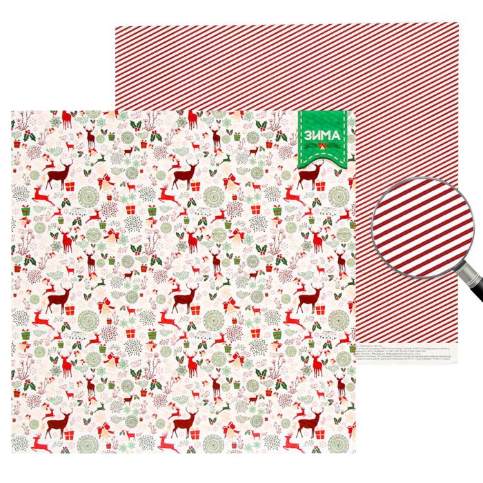 Бумага для скрапбукинга Cristmas diary "Зимние олени"30.5 x 30.5 см, 180 г/м