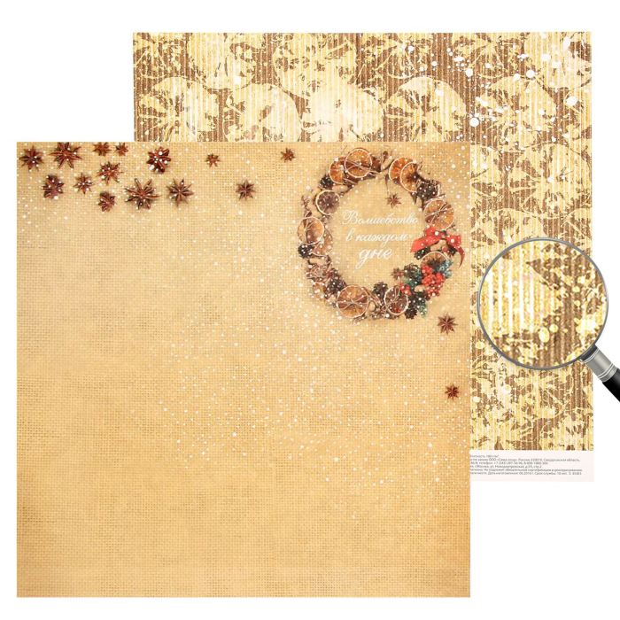 Бумага для скрапбукинга Пряности и радости"Волшебство в каждом дне"30.5 x 30.5 см, 180 г/м
