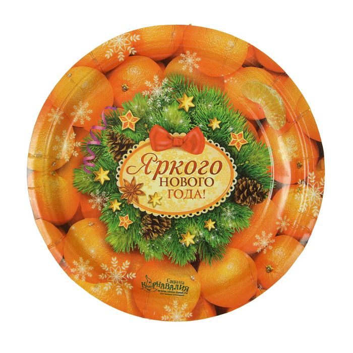 Тарелка бумажная "Яркого Нового года" мандарины (18 см)