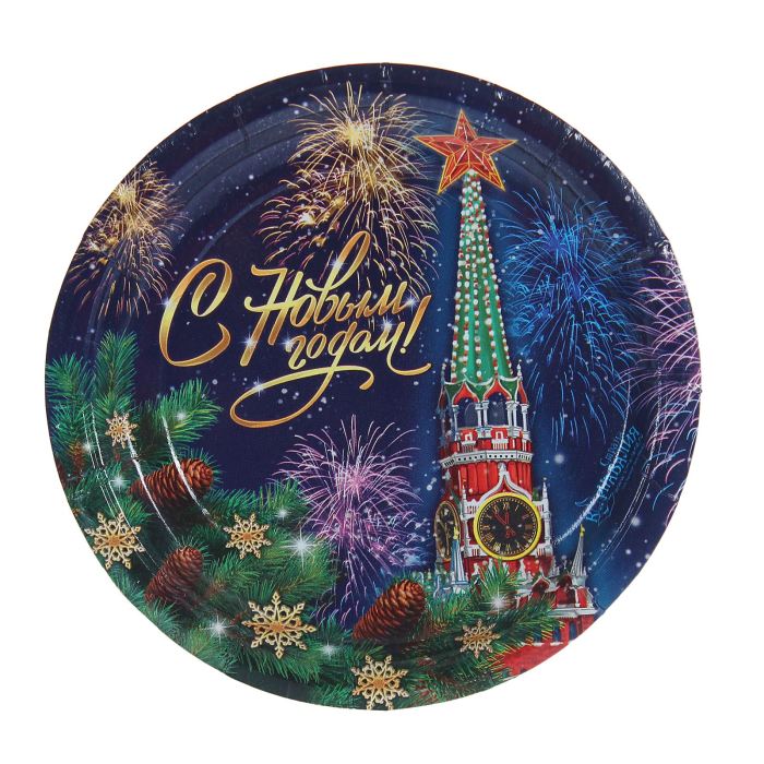 Тарелка бумажная "С Новым годом" фейерверк (18 см)