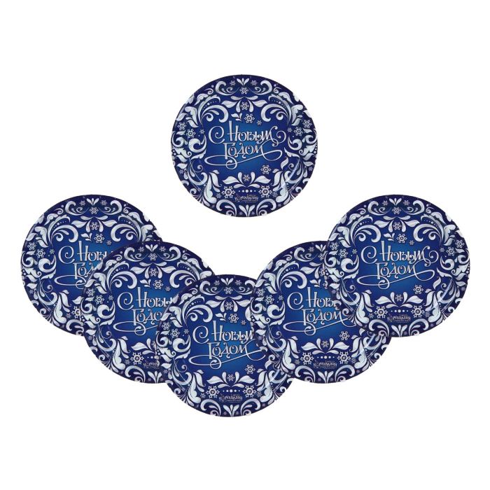 Тарелка бумажная "С Новым годом" морозный узор (18 см)