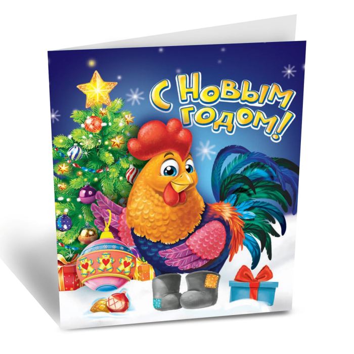 Открытка "С Новым годом" символ года петушок, 6 х 6 см