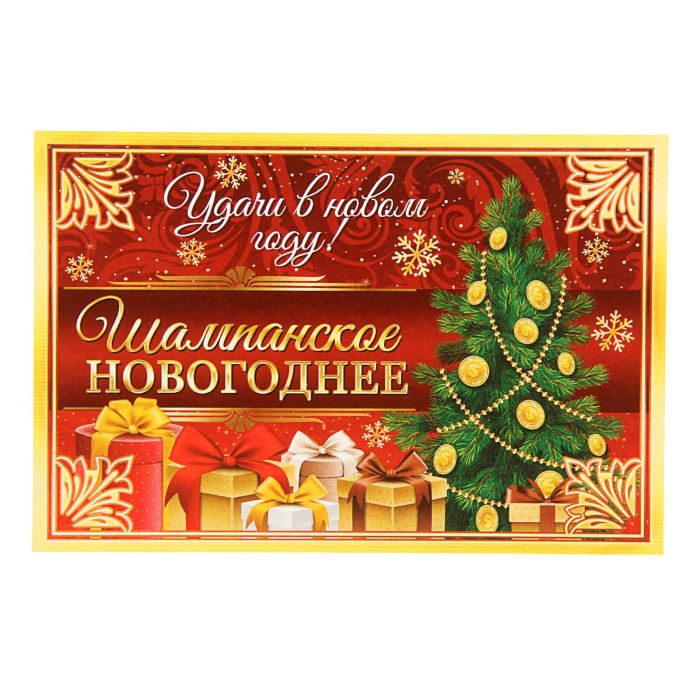 Наклейка на бутылку "Шампанское Новогоднее" (денежная елка), 12х8 см