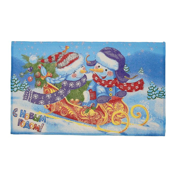 Полотенце вафельное Снеговики 35х60 см,100% хлопок 160 г/м2