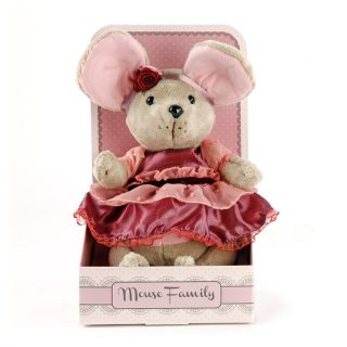 Индивидуальность образа мышки Вишенки подчеркивает авторское платье в лилово-розовых тонах. Упаковка, созданная в модном стиле шебби-шик, придает стилевую законченность игрушечному образу и воплощает идею готового подарка с ярким характером и большим шармом.
