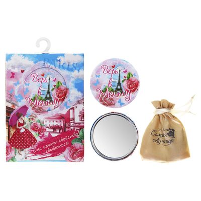 Зеркало с мешочком в подарочной коробке "Верь в мечту"Зеркало с мешочком в подарочной коробке "Верь в мечту"