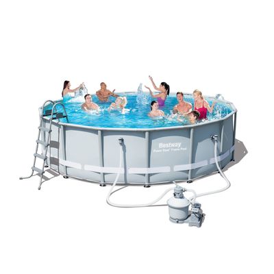 Каркас из нержавеющей стали быстро и легко собирается без дополнительных инструментов. Чаша представляет собой прочный трёхслойный материал, равномерно натянутый на металлическую основу. С внешней стороны есть удерживающая лента. Для заполнения бассейна необходимо не более двадцати минут.