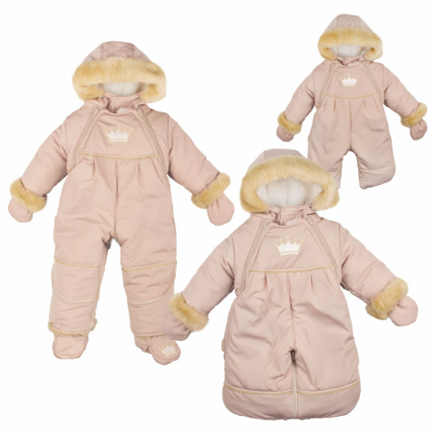 "Действительно Королевский своей грациозной изысканностью, выполненный с большим вкусом в каждой детали комбинезон для малышей! Отлично дополняет всю коллекцию Бристоль в вариации <<Королевский>>! Нижняя часть комбинезона трансформируется в ЧЕТЫРЕ варианта: 1. мешок для ножек новорожденного младенца, 2. закрытые (застегнутые на молнии) штанины для подросшего грудничка, 3. открытые штанины с отворотами из имитации меха норки для малыша, который сидит, 4. открытые, удлинённые развернутыми отворотами штанины для ходящего малыша на второй год нОски. Рукава так же имеют отвороты из норки. В комплекте меховые рукавички и меховые утеплённые мягкие сапожки. Глубокий, хорошо проработанный капюшон имеет затяжники и утепление контура имитацией меха норки. Подклад так же из меха шерсть. Две молнии по бокам помогут Вам легко одеть и снять комбинезон с малыша Декорирование на центральной части грудки и на правом сапожкЕ - объемная 3D вышивка в виде королевской европейской короны. Верх-непромокаемая ткань Наполнитель - синтепон Подклад - одежный мех (шарсть 60%, п/э 40%) В комплекте к комбинезону идут рукавички и сапожки. Размеры спаренные на вырост: 20-22 (3-9 мес) и 22-24 (9мес - 1,5 года) ТМ КРОШКИН ДОМ Производитель: ООО ВИТ индустрия"
