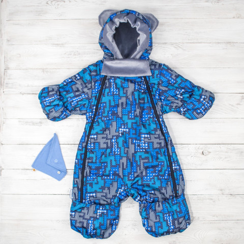 Демисезонный комбинезон "Матрица" с ушками и закрывающимися ручками, ножками. Две молнии по бокам, две манишки: одна-трикотаж ворсовой (плюш), другая-трикотажная. На ножках отстегавающая регулирующая резинка для сапожек на пуговках. Состав: верх: дюспо, подклад: трикотаж кулир - 100% хлопок, наполнитель: шелтер. Цвет: синий. Размеры: 20-26. Упаковка: Вешалка для белья, индивидуальный пакет 50*65см ТМ Крошкин дом Производитель: ООО "ВИТ индустрия"