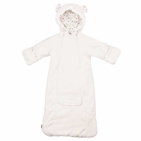 "Комбинезон с мешком для ног вместо раздельных штанин мешок с прорезями для ремней авто-кресла по полочке и спинке и клапаном на липе для их закрывания. Капюшон на затяжниках, декорирован ушами. Ушки смотрят вперед. Рукава с отворотами-рукавичками. Ткань верха - велюр, подклад - трикотаж интерлок основной серии высшего качества пенье и кулирка - хлопок 100%. Молнии, шляпная резинка, затяжники - в цвет Наполнитель: синтепон силиконизированный, плотность 100 г/м3, Декорирование интерлоком основной серии: - внутренняя часть ушей - внутренняя часть клапана - Внутренняя часть рукавичек (в закрытом состоянии). - внутр.часть капюшона. Размер: 0-3 мес и 3-6 мес. Упаковка: пакет. Есть плечики. ТМ КРОШКИН ДОМ Производитель: ООО ВИТ индустрия"
