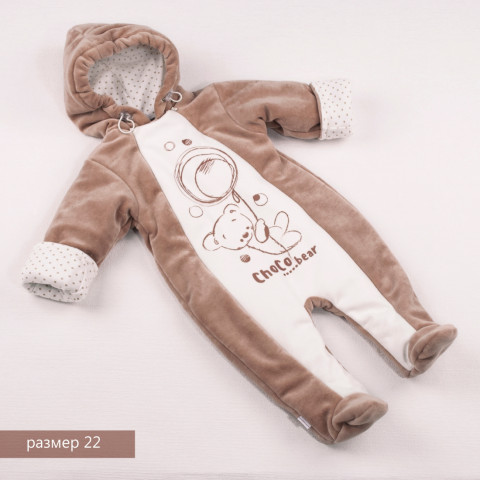 "Теплый на натуральном хлопковом подкладе модный комбинезон с двумя молниями-застежками и большим не смываемым рисунком на груди и животе. Отличное дополнение всей коллекции <<Шоколадный мишка>>! Цвет: кофе с молоком (темно-бежевый) с молочной грудкой Размер:16, 18,20 с закрывающимися ручками и ножками 22р- с закрытыми штанинами и открытыми рукавами, 24,26- с открытыми рукавами и штанинами. Упаковка: пакет. Есть плечики. ТМ КРОШКИН ДОМ Производитель: ООО ВИТ индустрия"