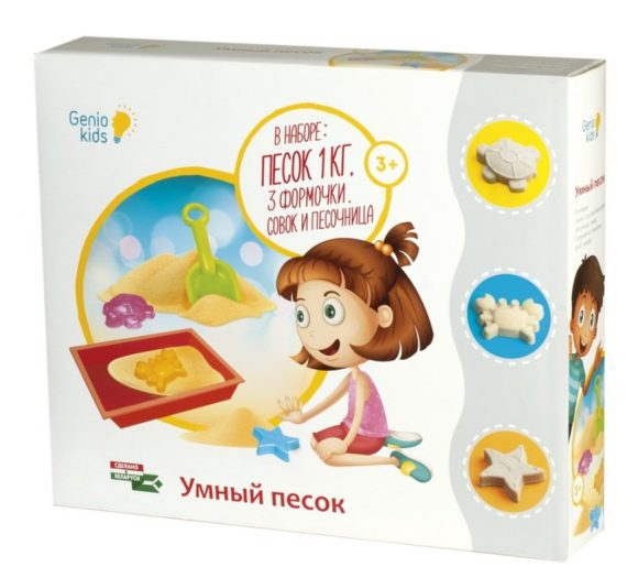 Набор для творчества "Умный песок" позволит создать в домашних условиях настоящую песочницу. Благодаря своему составу (кварцевый песок с добавлением силикона) песок имеет легкую и приятную структуру и вместе с тем хорошо держит форму и не распадается. Его легко убрать и счистить, он абсолютно не токсичен. В наборе имеются также лопатка и три формочки. мный песок хорошо лепится не липнет к рукам, вызывает приятные тактильные ощущения. Умный песок прекрасно подойдет для развития творческих способностей воображения и фантазии, он помогает развить моторику. Игра с умным песком поможет снять напряжение. Песок не оставляет пятен, не липнет к рукам, не засыхает. Комплект: песок 1 кг., пластмассовая песочница, формочки 3 шт.(черепаха, краб, звезда), лопатка.