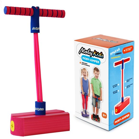 Тренажер Moby Jumper завоевывает сердца детей с молниеносной быстротой! Прыгать на тренажере Moby Jumper не только очень просто, но и очень полезно - для развития координации движений и укрепления разных групп мышц. Ну а про восторг, который испытывают дети от такого веселого времяпрепровождения, и говорить не приходится! Moby Jumper состоит из мягкой опоры для ног, эластичных ремней и ручки-перекладины. Тренажер выдерживает нагрузку до 50 кг. Рекомендован для детей 3-8 лет. Сам процесс прыжков сопровождается забавным звуком, подобным звуку пищалки. Использовать под контролем взрослых!