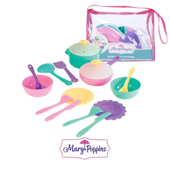Кухонный игровой набор из эксклюзивной коллекции "Бабочка" ТМ Mary Poppins, 16 предметов. Изготовлен из пластмассы. Упакован в прозрачную сумочку на молнию, что очень удобно с точки зрения хранения и переноски. Набор в сумочке можно взять с собой на улицу или в гости.