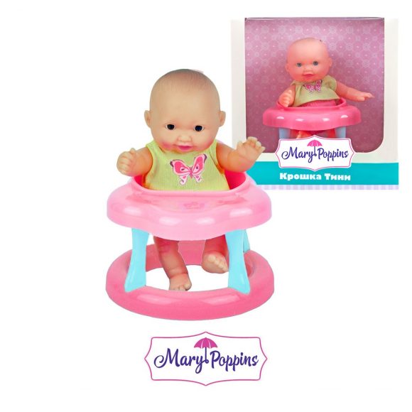 Кукла-пупс высотой 12 см. Ручки и ножки у куколки двигаются. Поставляется в комплекте с ходунками. Куклу можно купать. Одета в майку и трусики. Предназначена для сюжетно-ролевой игры и эмоционального развития. Рекомендованный возраст: 3 года +.