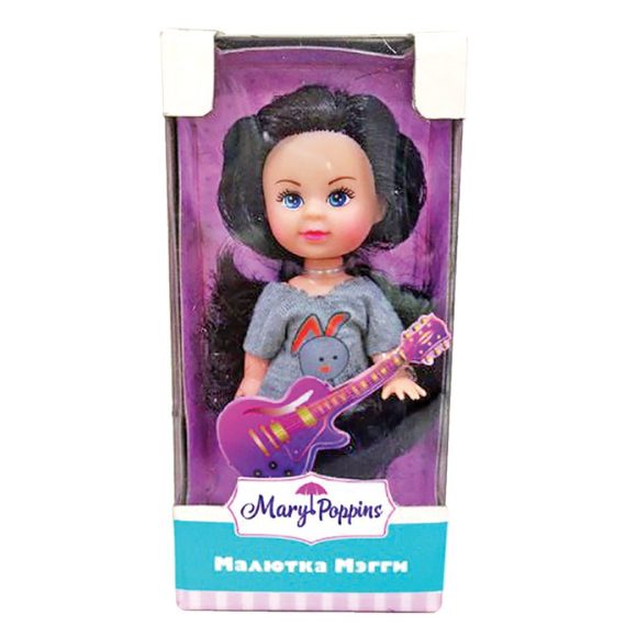 Куколка из эксклюзивной тематической серии "Малютка Мэгги" торговой марки Mary Poppins. Мэгги представлена в образе рок-звезды. Высота куколки 9 см. Рекомендованный возраст: 3 года +.