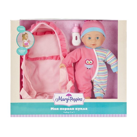 Кукла "Милый болтун" с мягконабивным телом, твердыми ручками и ножками. Куколка очень похожа на настоящего малыша! Если нажать кукле на живот, она будет смеяться, плакать, весело агукать или звать маму и папу. Куколка одета в красочный комбенизон с принтом в виде совенка, а на голове у нее - милая шапочка с бантом. В комплекте есть люлька с ручками для переноски куклы и бутылочка. Игрушка изготовлена из пластмассы и ПВХ с элементами текстиля. Работает от 3-х батареек типа AG13 (входят в комплект). Перед началом игры необходимо удалить картонную заглушку рядом с отсеком для элементов питания. Высота куклы: 30 см. Размер люльки (ДхШхГ): 30х16,5х8 см. Рекомендованный возраст: 3 года +.