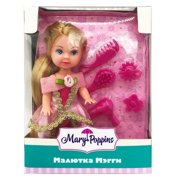 Кукла Мегги из эксклюзивной коллекции Mary Poppins "Златовласка". Набор состоит из симпатичной куколки в нарядном платье и аксессуров причесок - фена, 2-х расчесок и 2-х заколок в форме цветов. Рост куклы составляет 9 см. Игрушки очень компактные - их можно брать на прогулку, в гости или в садик. Изделие изготовлено из пластмассы и ПВХ с элементами текстиля. Рекомендованный возраст: 3 года +.