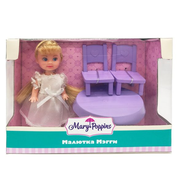 Кукла Мегги из эксклюзивной коллекции Mary Poppins "Ждем гостей". Набор состоит из симпатичной куколки в нарядном платье с блестками, стола и 2-х стульев. Рост куклы составляет 9 см. Игрушки очень компактные - их можно брать с собой на прогулку, в гости или в садик. Изделие изготовлено из пластмассы и ПВХ с элементами текстиля. Рекомендованный возраст: 3 года +.