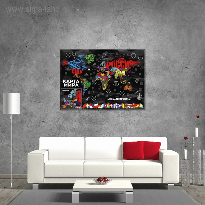 Карта мира со скретч-слоем "Шрифтовая" — отличная возможность изучить окружающий нас мир в деталях!