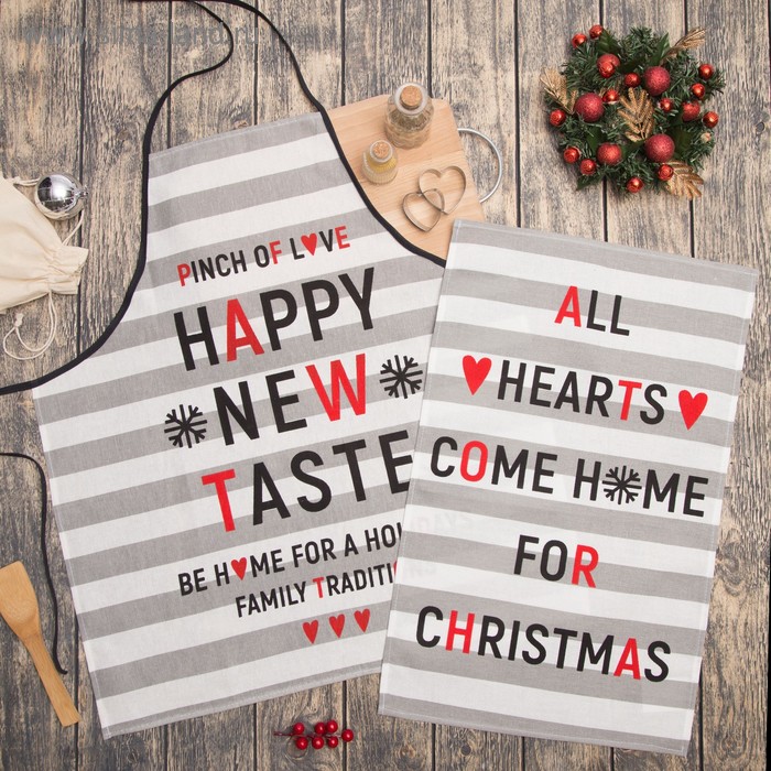 Кух.набор "Happy New Taste" фартук 67х60см, полот.60х38см,100% хл 160 г/м2, рогожка