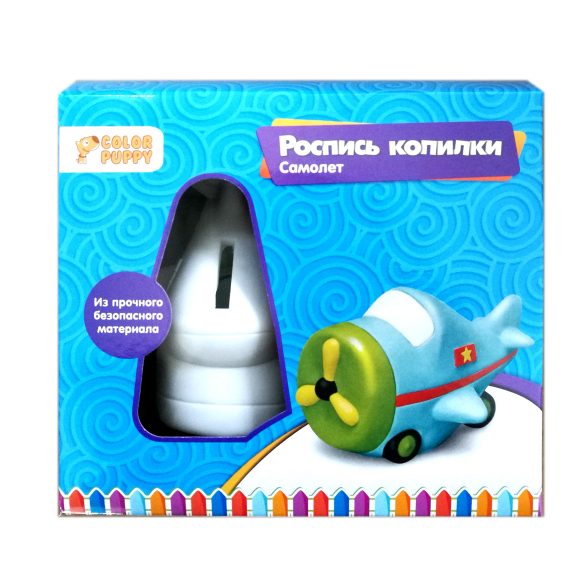 Роспись копилки "Самолёт" - это очень интересный набор для творчества от Color Puppy, который позволит ребёнку проявить фантазию и создать настоящий арт-объект! В комплекте прилагаются акриловые краски (4 цвета) и кисточка для росписи фигурки. Готовую копилку можно использовать для личных сбережений или подарить другу! Высота фигурки составляет 11 см. Изделие изготовлено из безопасного и прочного материала - пластмассы. Рекомендованный возраст: 3 года +